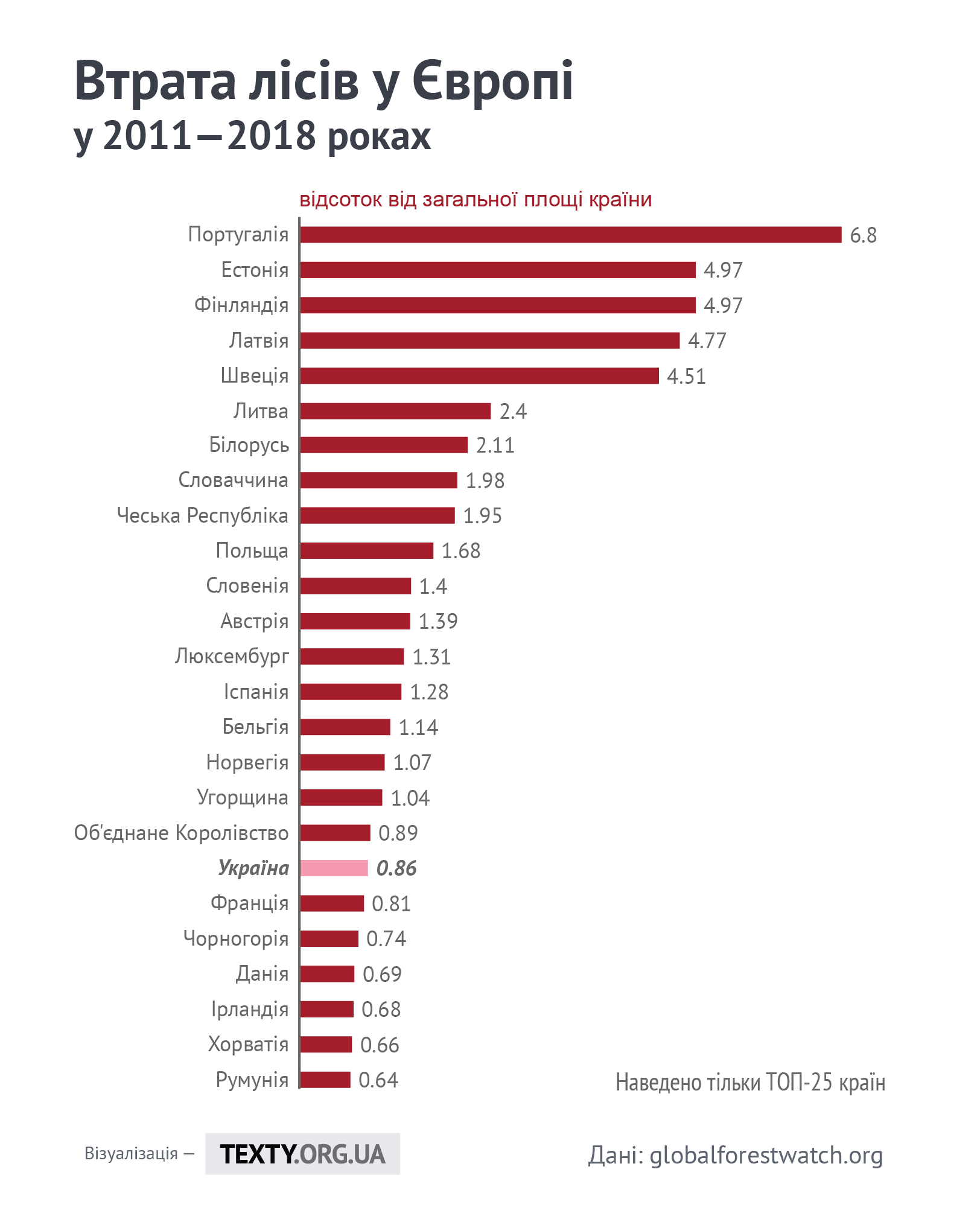 Одразу перейдемо до України. На глобальному рівні ситуація з втратою лісів у нашій країні, прямо скажемо, не найгірша.